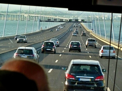 Die Ponte 25 de Abril ist ein 3,2 Kilometer langer Brückenzug in Portugal mit einer 2278 Meter langen Hängebrücke über den Tejo.